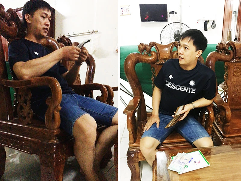 Thiện đang nhận số tiền hàng chục triệu đồng từ người dân thì bị công an ập đến bắt quả tang.