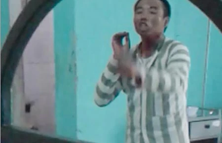 Sau khi giết chết bạn tù, Phan Công Trọng khóa cửa phòng bệnh, cố thủ bên trong và la hét, thách thức. Ảnh: CTV