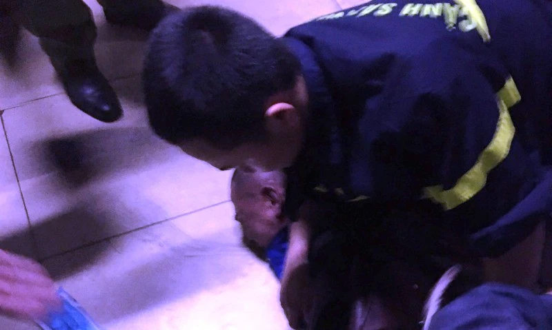 Cảnh sát khống chế bắt giữ Hội, giải cứu nữ điều dưỡng. Ảnh: Cảnh sát PCCC Nghệ An