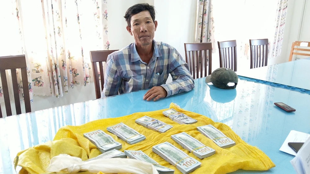 Bị can Nguyễn Văn Mỹ cùng số ngoại tệ. Ảnh: QM