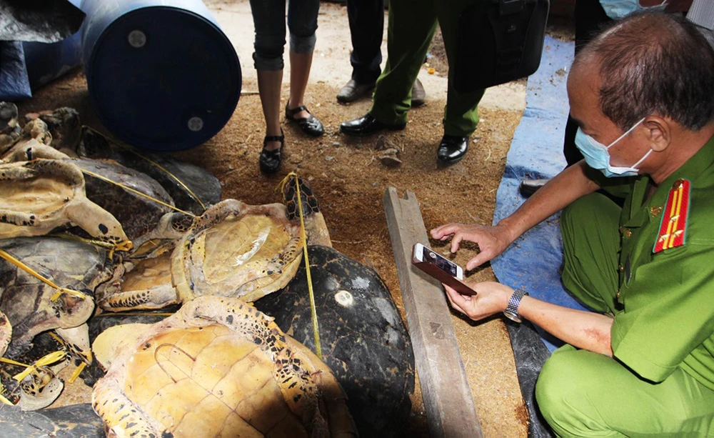 Lực lượng chức năng kiểm tra, phát hiện hàng ngàn xác rùa biển của ông Hoàng Tuấn Hải.