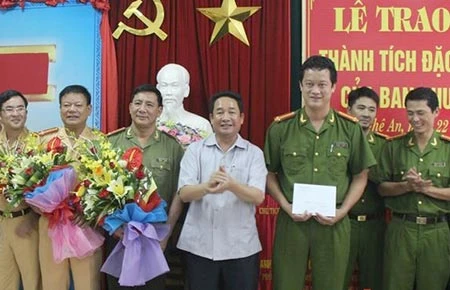 Cùng ngày, Thiếu tướng Nguyễn Xuân Lâm và Đại tá Nguyễn Hữu Cầu (Giám đốc và Phó Giám đốc Công an tỉnh Nghệ An) đã biểu dương, tặng hoa, trao thưởng 10 triệu đồng cho Ban chuyên án 614K.