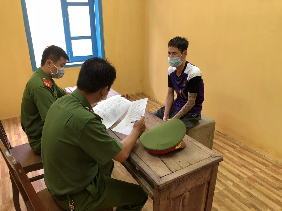 Cơ quan chức năng lấy lời khai với Thạch. Ảnh: QM