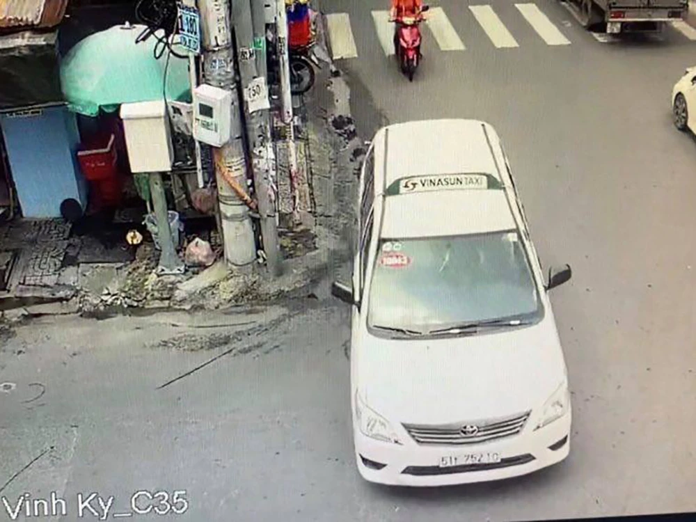 Thắng đội nón lưỡi trai, mang kính đen, khẩu trang che kín mặt, đeo túi xách bước xuống từ taxi đậu đối diện Phòng giao dịch Trương Vĩnh Ký, yêu cầu taxi dừng chờ.
