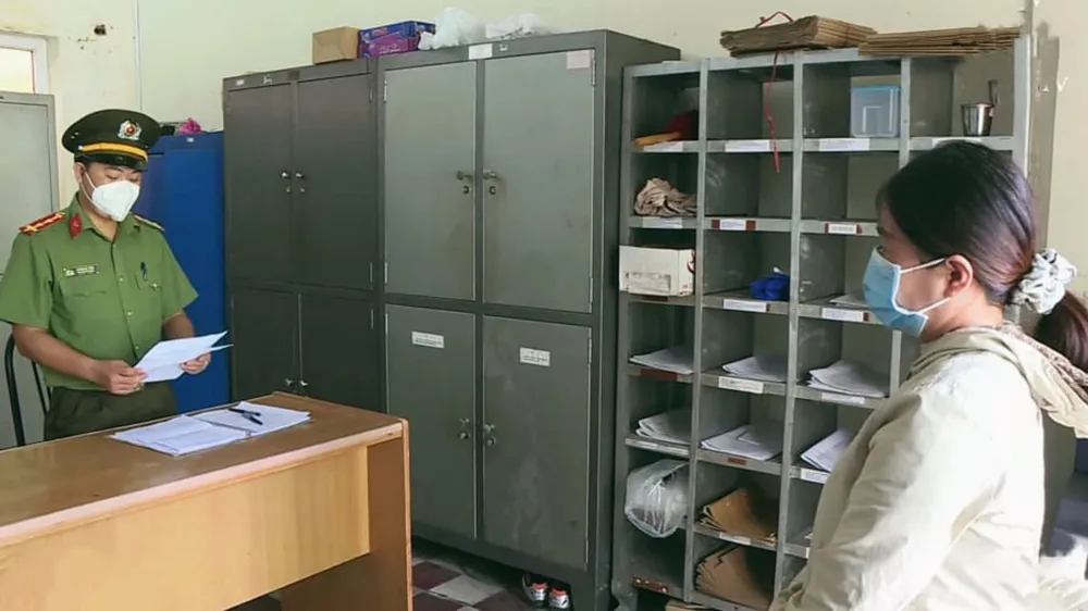 Công an đọc quyết định khởi tố bị can Hằng. Ảnh: T.M