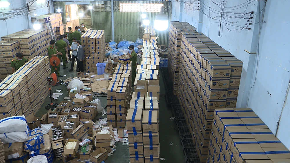 Qua kiểm đếm, có 2.370 thùng găng tay đã đóng gói sẵn, tương đương hơn 2,3 triệu chiếc găng tay giả, trị giá trên 3 tỉ đồng.