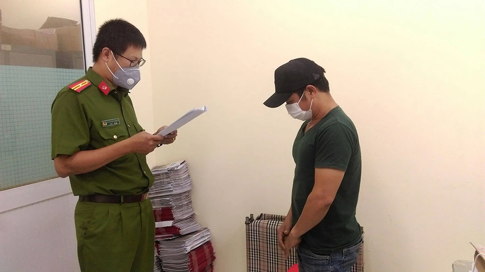 Công an đọc lệnh khởi tố, bắt giam đối với bà Hoa vào chiều ngày 7-8. Ảnh HT