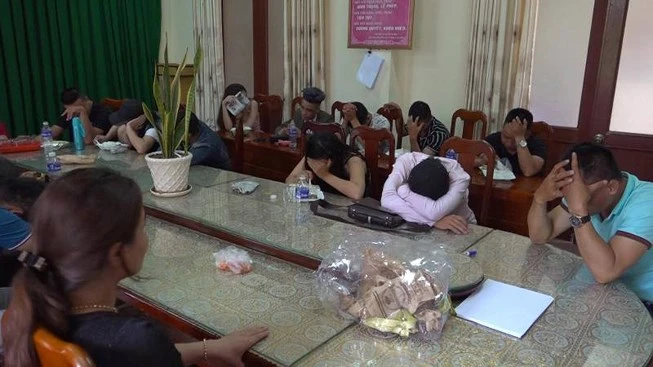 Sau đó những người này được mời về trụ sở công an làm việc. Qua test nhanh, lực lượng nghiệp vụ phát hiện có 44 người dương tính với ma túy, trong số này có 10 nữ.