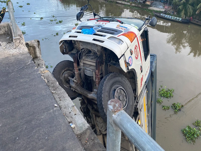 Trước đó làm việc với công an, tài xế Thuận khai nhận điều khiển xe tải 8,8 tấn, trên xe có chở 15 tấn lúa qua cầu Thiên Hộ (tải trọng 3,5 tấn). Khi đến cầu Thiên Hộ, Thuận phát hiện có biển báo cấm nhưng do phương tiện đã lên cầu nên cho xe chạy qua luôn và gây ra vụ sập cầu Thiên Hộ.