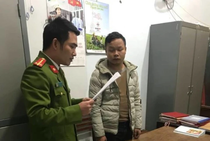 Cảnh sát hình sự Công an tỉnh Hà Tĩnh đọc lệnh bắt tạm giam Đào Văn Lượng.