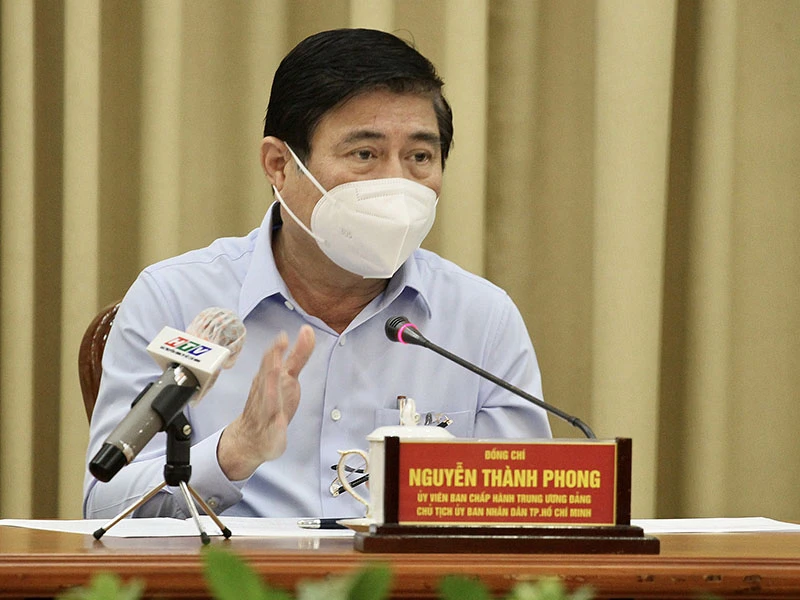 Chủ tịch UBND TP Nguyễn Thành Phong, Trưởng Ban chỉ đạo phòng, chống dịch COVID-19 TP chủ trì cuộc họp. Ảnh: TTBC
