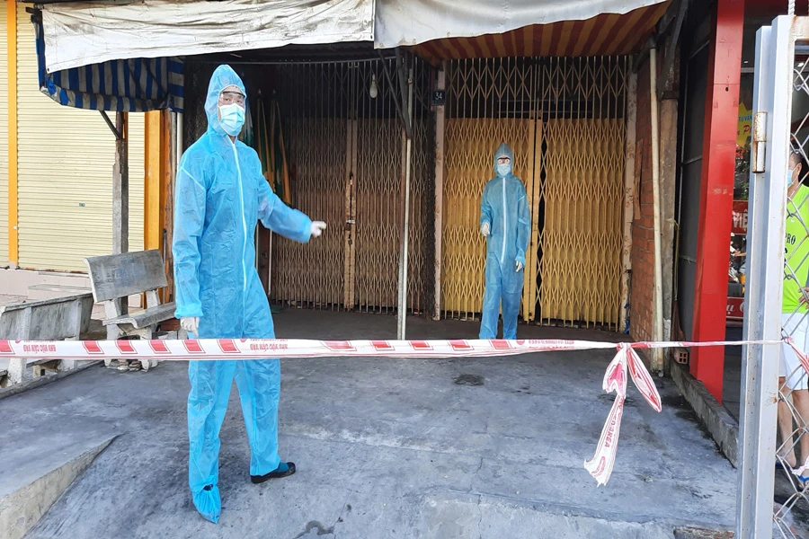 Phong tỏa khu vực có liên quan đến COVID-19 ở Long An. Ảnh: PV