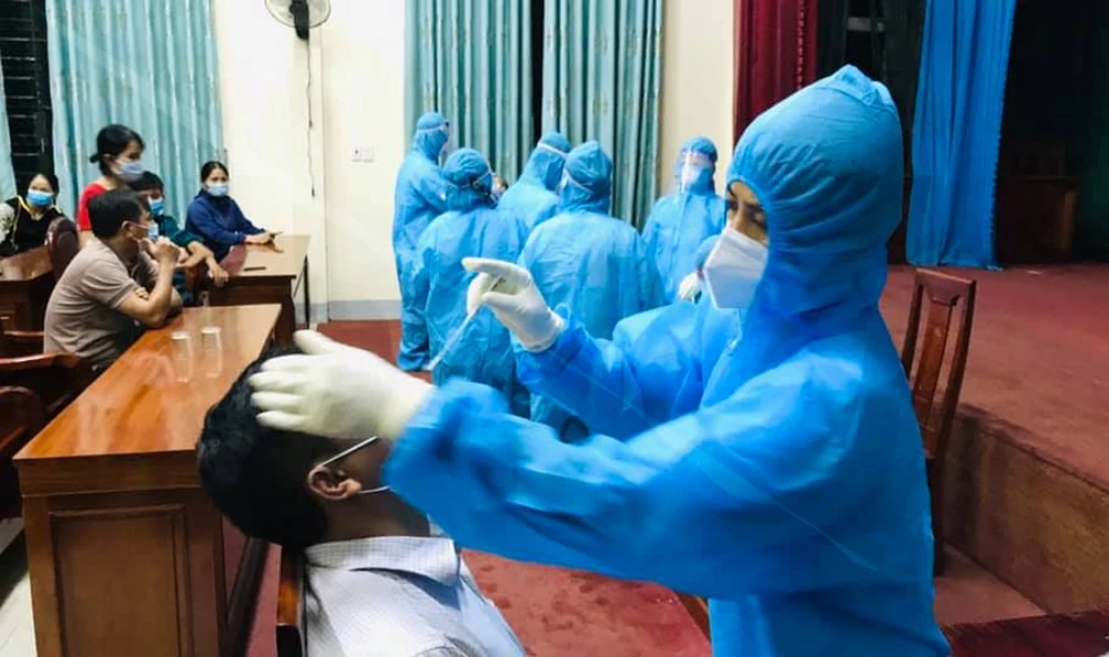 Lấy mẫu xét nghiệm cho người dân huyện Hương Sơn, Hà Tĩnh.