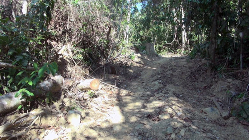 Lâm tặc mở một con đường đi sâu vào rừng để đốn gỗ. Ảnh: VŨ XUÂN