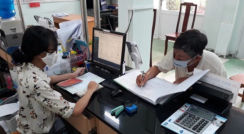 Cán bộ phường Linh Tây đang giải quyết thủ tục cho dân trong dịch COVID-19. (Ảnh minh họa). Ảnh: THANH TUYỀN