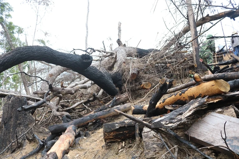 Hiện trường vụ phá rừng. Ảnh HUY TRƯỜNG