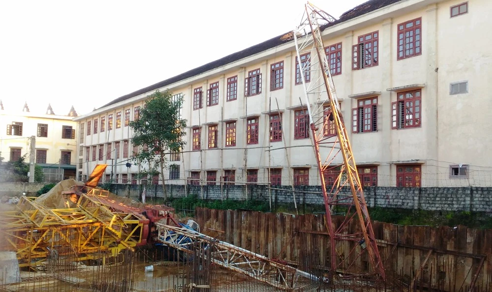 Như đã đưa tin, chiều 14-11, cần cẩu tại dự án đổ sập, ập lên mái ngói trên tầng 3 dãy nhà A4 của Trường THPT Lê Viết Thuật (TP Vinh) làm em Trần Văn Hải (học lớp 10A7) tử vong tại chỗ. Mái ngói nhà trường bị hư hỏng.