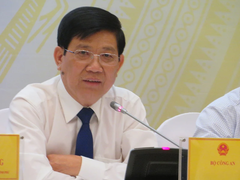 Thứ trưởng Bộ Công an Nguyễn Văn Sơn (ảnh trên) và Phó Chủ tịch UBND TP Hà Nội Nguyễn Văn Sửu đang trả lời báo chí về nghi vấn bảo kê ở chợ Long Biên. Ảnh: TRỌNG PHÚ