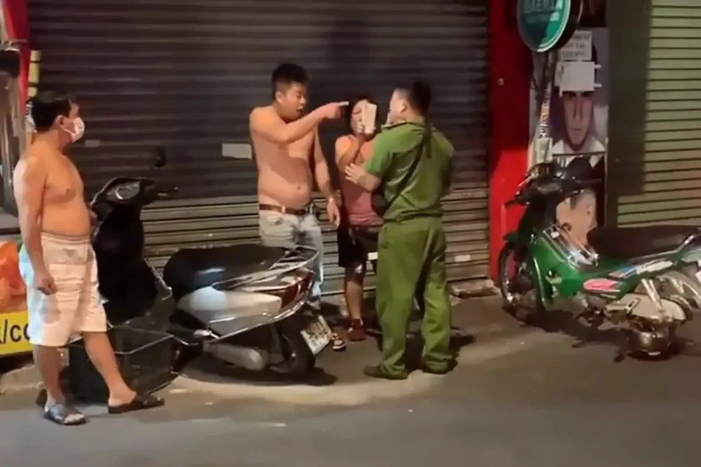 Sau đó các công an và bảo vệ dân phố có mặt, đưa những người liên quan về trụ sở làm rõ. Clip đăng tải khiến dư luận xôn xao.