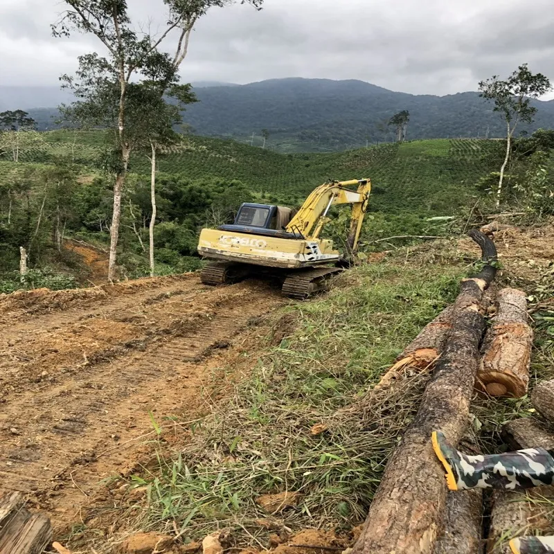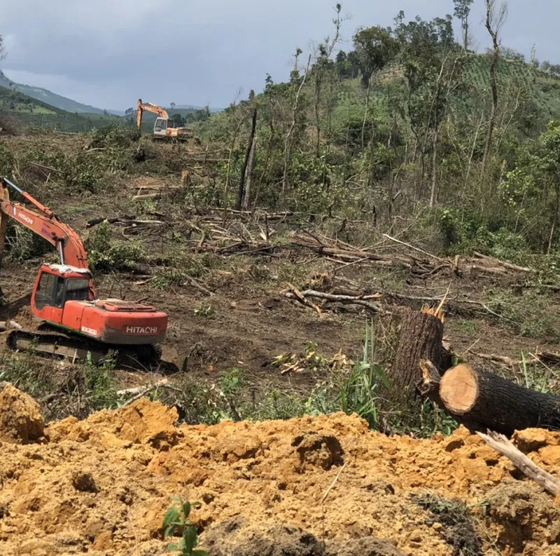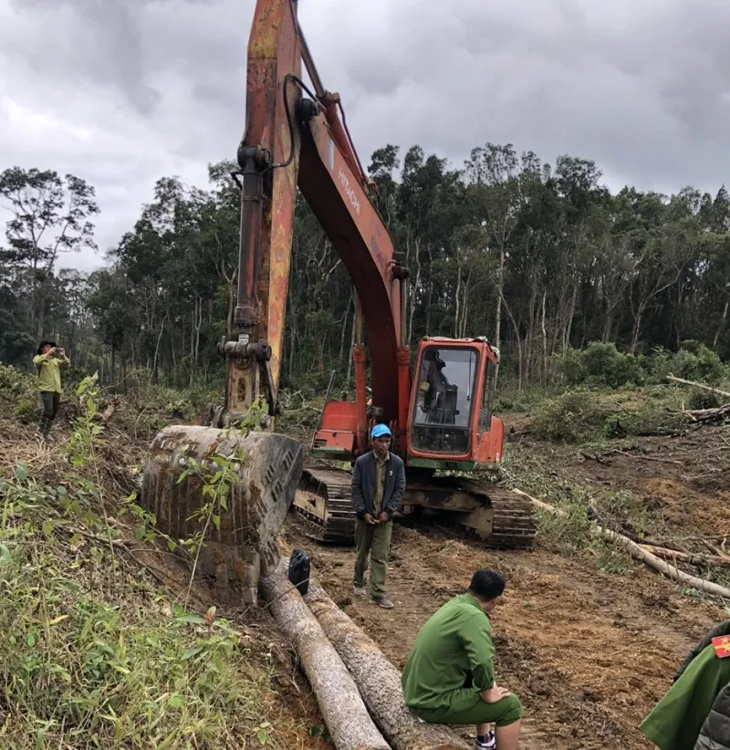 Đoàn kiểm tra phát hiện có ba người thực hiện hành vi phá rừng trái pháp luật bằng hình thức dùng ba máy múc múc bật gốc cây, đào, bới.