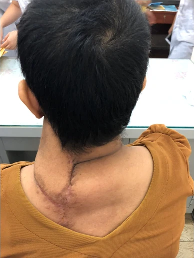 Sau hơn 8 giờ đồng hồ, các bác sĩ đã cắt bỏ hoàn toàn khối u cân nặng 3 kg, tạo lại khuyết hỗng vùng cổ bằng vạt cơ thang. Sau phẫu thuật, bệnh nhân được xạ hóa trị do giải phẫu khối u ác tính, đến nay sức khỏe duy trì tốt.