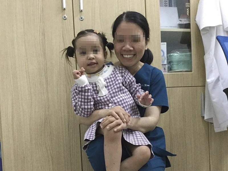 Bé Ng. sau khi được phẫu thuật.