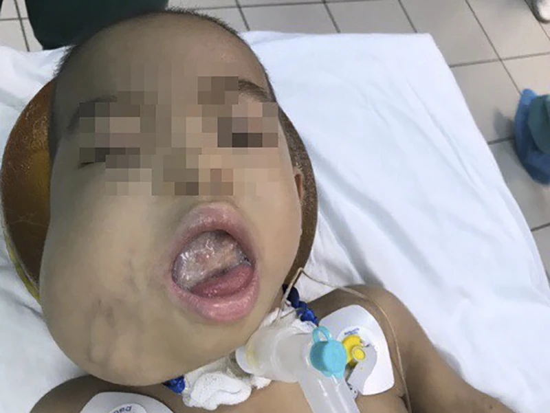Khối u lớn lên từng ngày, gây cản trở đường thở, nói khó, ăn uống khó. Sau đó, bé Ng. được gia đình đưa đến BV Trung ương Huế để điều trị. Tại đây, kết quả xét nghiệm cho thấy đây là khối u quái dạng hỗn hợp, vừa có thành phần ác tính, vừa có thành phần lành tính.