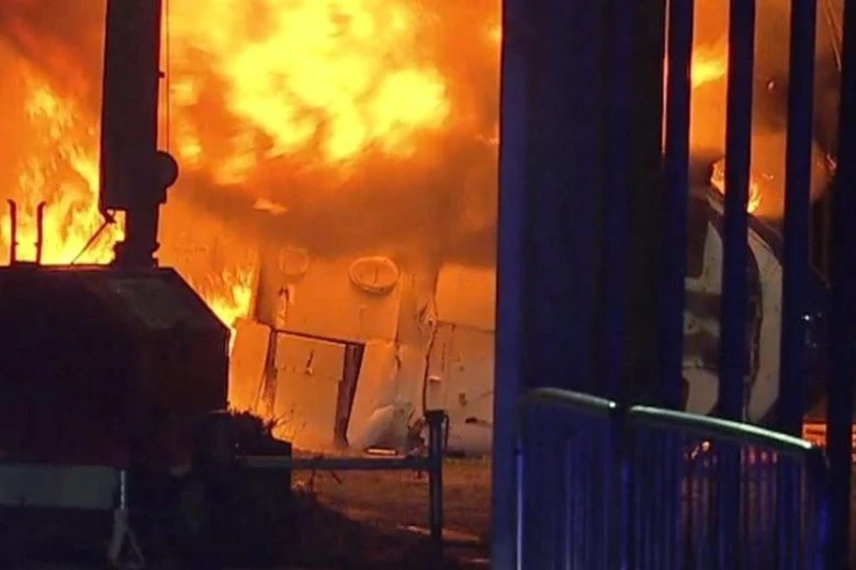 Chiếc trực thăng rơi tạo nên quả cầu lửa khổng lồ.