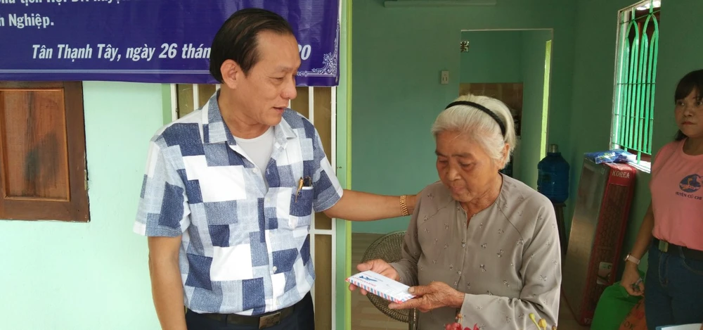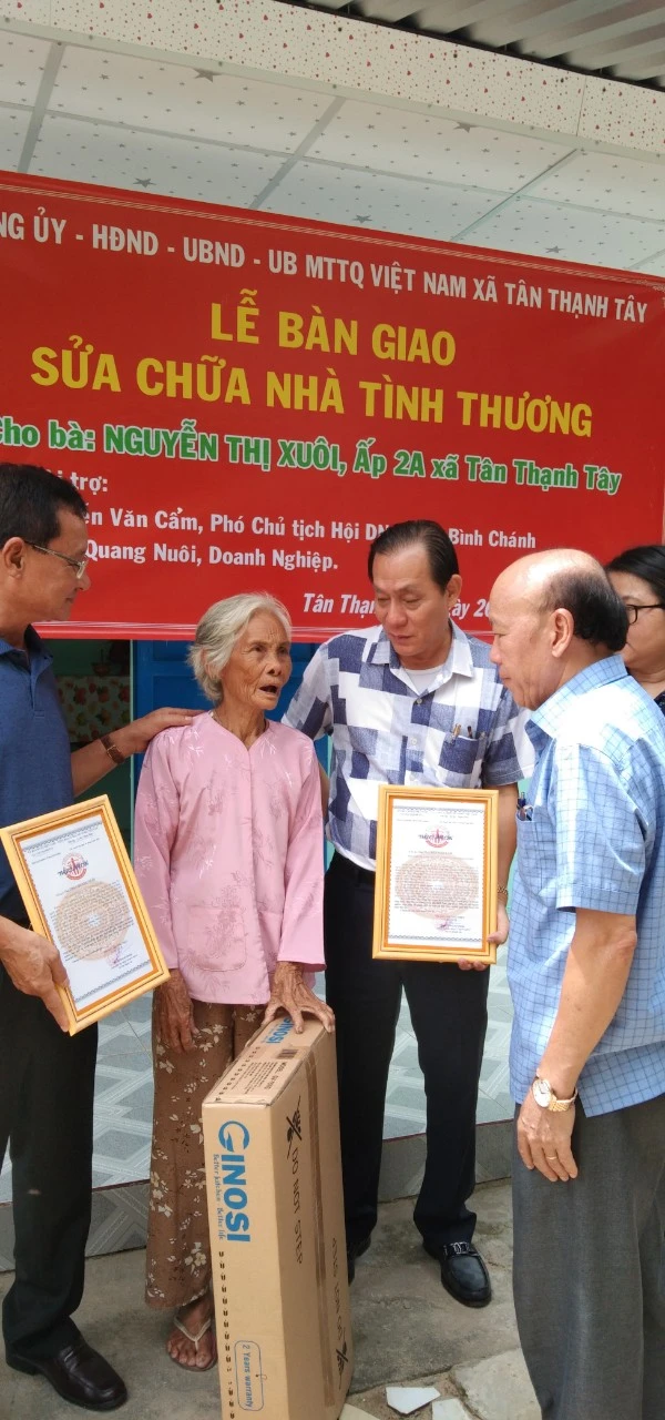 Đến bàn giao sửa chữa nhà tình thương cho cụ bà Nguyễn Thị Xuôi (82 tuổi), tại ấp 2A, xã Tân Thạnh Tây, ông Trần Quang Nuôi, Giám đốc Quỹ tín dụng Tân Túc, huyện Bình Chánh chia sẻ: “Tôi rất vui mừng, cảm động khi đóng góp một phần nhỏ chăm lo đời sống xã hội về nhà ở cho bà con thiếu điều kiện sửa chữa khi nhà xuống cấp, hư hỏng.