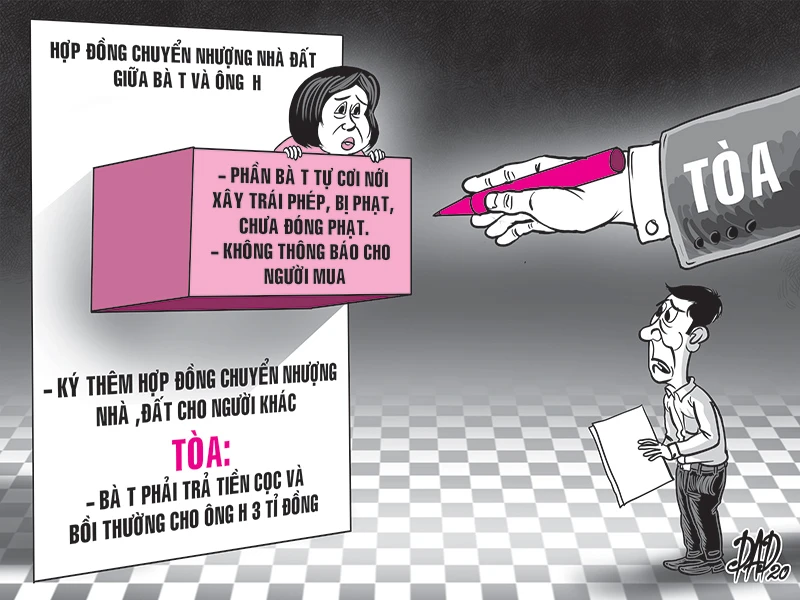 Cho rằng bà T. cố tình không thông tin đầy đủ về việc căn nhà bị xử phạt hành chính và vi phạm thỏa thuận chuyển nhượng nên ông H. khởi kiện. Ông yêu cầu TAND quận 1 xử buộc bà T. phải bồi thường 3 tỉ đồng, gấp đôi số tiền ông đã đặt cọc.