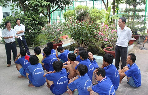 Tiếp nhận, phân loại học viên để đưa vào các phòng tại cơ sở xã hội Bình Triệu. Ảnh: HL