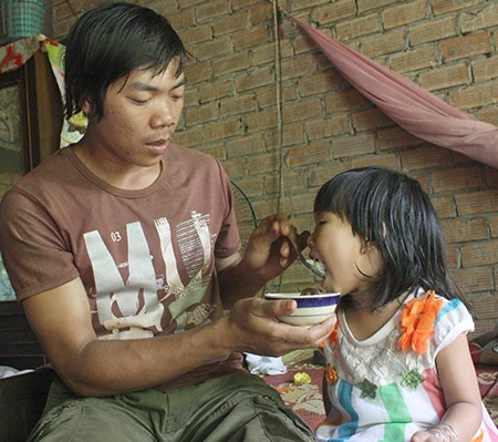 Anh Nguyễn Tấn Đại cùng đứa con gái bé bỏng của mình. Ảnh: VŨ HỘI