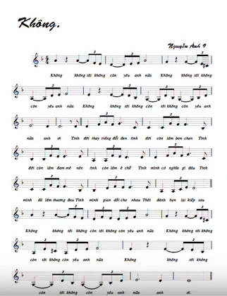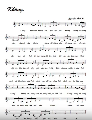 Đây có lẽ là ca khúc đơn giản, ngắn gọn nhất trong nền tân nhạc Việt Nam chỉ với một câu “Không. Không. Tôi không còn yêu em nữa” được lặp đi lặp lại nhiều lần. Ca từ Không vỏn vẹn 119 chữ nhưng riêng câu "Không. Không. Tôi không còn yêu em nữa” chiếm 71 chữ!