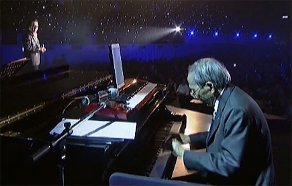 Nhạc sĩ Nguyễn Ánh 9 đệm piano cho ca sĩ Elvis Phương hát Không. Nguồn: YouTube/VTV9