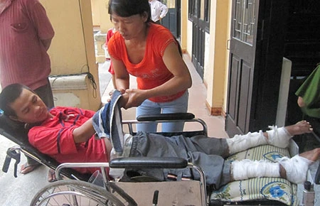 Người bị hại Lê Văn Hùng bị thương tật 92%, bị liệt cả hai tay, hai chân. Ảnh: VIẾT LONG
