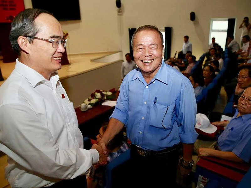 Chiều 7-5, Bí thư Thành ủy TP.HCM Nguyễn Thiện Nhân, Phó Bí thư Thường trực Thành ủy Trần Lưu Quang cùng các ông Lâm Đình Thắng - Phó Bí thư Quận ủy Bình Thạnh và ông Ngô Tuấn Nghĩa - Chính ủy Bộ Tư lệnh TP.HCM đã có buổi tiếp xúc với cử tri quận 3.