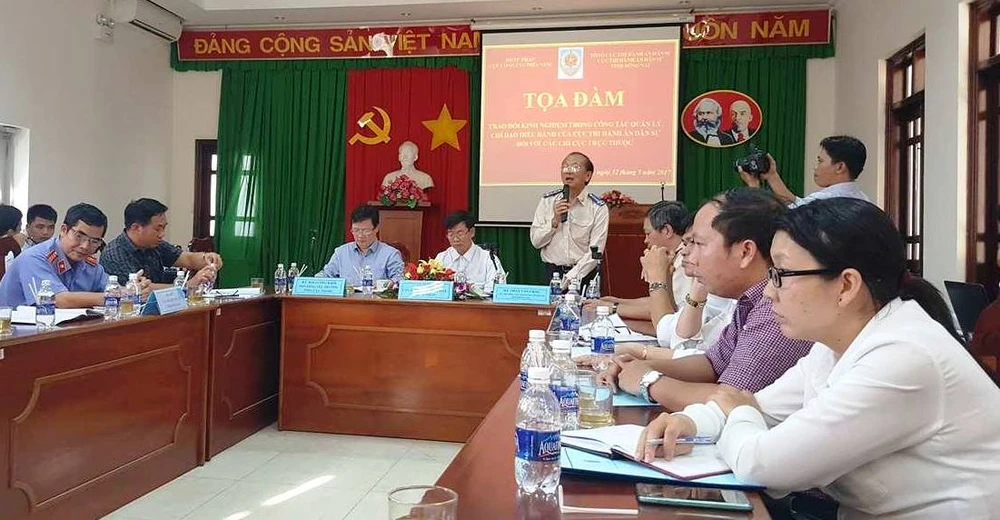 Ông Nguyễn Văn Gấu, Cục trưởng Cục THADS tỉnh Long An, phát biểu tại buổi tọa đàm. Ảnh: KP