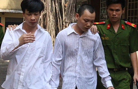 Hai bị cáo Em và Lập bị dẫn giải về trại giam sau phiên tòa. Ảnh: HY