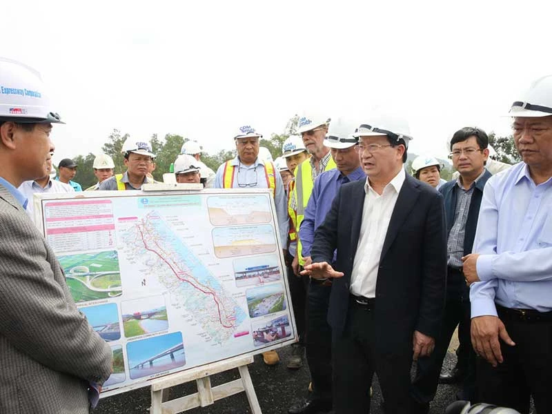 Phó Thủ tướng Trịnh Đình Dũng kiểm tra, giám sát việc thi công đoạn cao tốc Đà Nẵng-Quảng Ngãi. Ảnh: NL