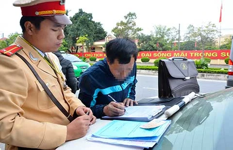 CSGT xử lý một trường hợp vi phạm. Ảnh: TUYẾN PHAN