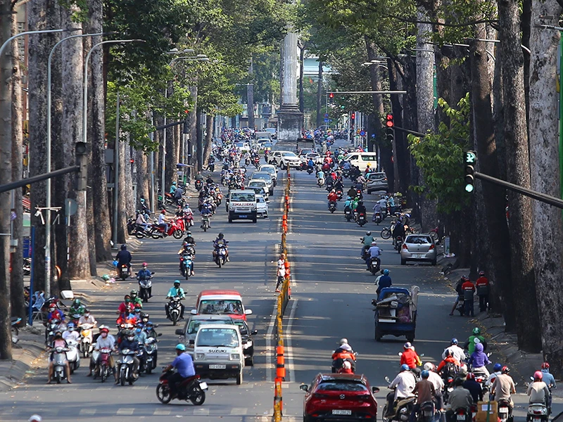 Đường Nguyễn Tri Phương (quận 10, TP.HCM) đã đông đúc xe cộ hơn những ngày đầu cách ly xã hội. Ảnh: HOÀNG GIANG