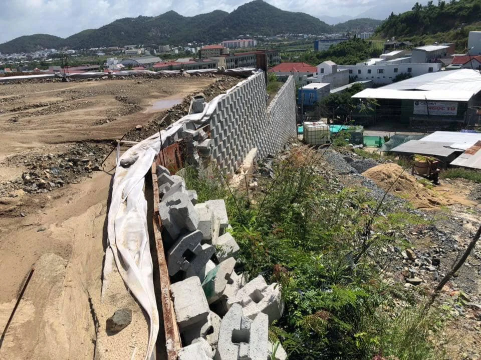 Như Pháp Luật TP.HCM đã nhiều lần phản ánh, tháng 10-2017, Sở Xây dựng Khánh Hòa cấp giấy phép xây dựng cho Công ty Đồi Xanh thi công dự án Marina Hill trên, trong đó tường chắn bao quanh dự án được xây cao 4 m, có kết cấu bằng đá chẻ, cách nhà dân ít nhất 7 m. Tháng 4-2018, chủ đầu tư bắt đầu xây dựng tường chắn với việc xây cao gấp bốn lần so với giấy phép, tức cao đến 16 m, tự thay đổi kết cấu bằng bê tông, gạch; nhiều đoạn cách nhà dân chưa được… 20 cm.
