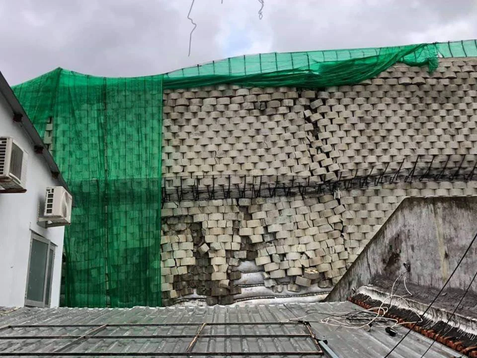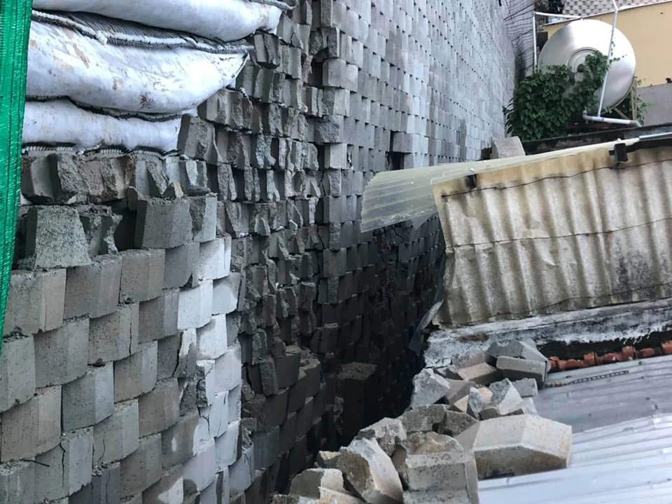 Tường chắn đổ xuống nhà dân. Ảnh: VN