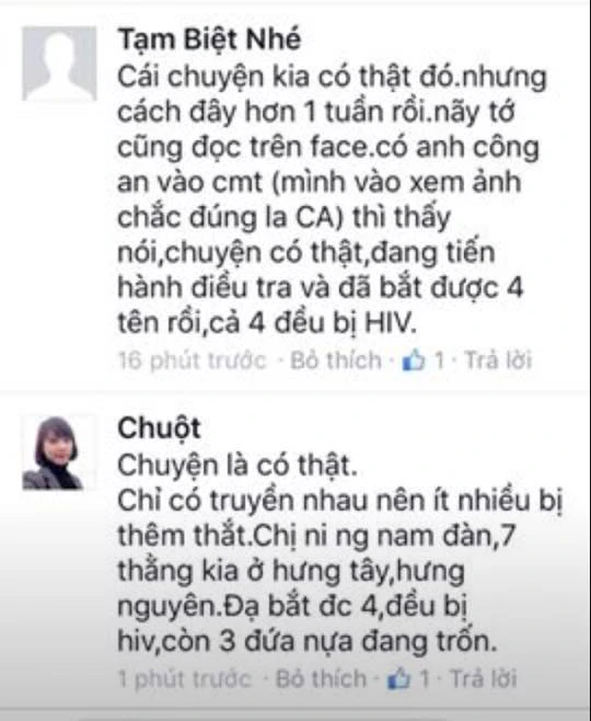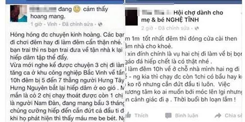 Chưa dừng lại ở "chuyện kể" tin đồn, nhiều sinh viên và nhiều người cũng đưa lên Facebook câu chuyện trên ở diễn đàn ĐH Vinh (Vinh University) và Hội chợ dành cho mẹ và bé Nghệ Tĩnh, rồi nhiều người bình luận "chuyện đó có thật". Những người này "kể câu chuyện" trên và cho rằng nạn nhân là chị NTT (quê xã Nam Giang, huyện Nam Đàn) làm công nhân gấu bông ở Khu công nghiệp Bắc-Vinh, đang mang bầu năm tháng, bị hiếp dẫn đến tử vong...