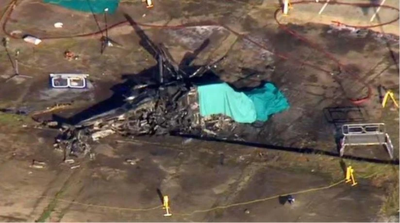 Ảnh chụp từ trên cao chiếc trực thăng gặp nạn.