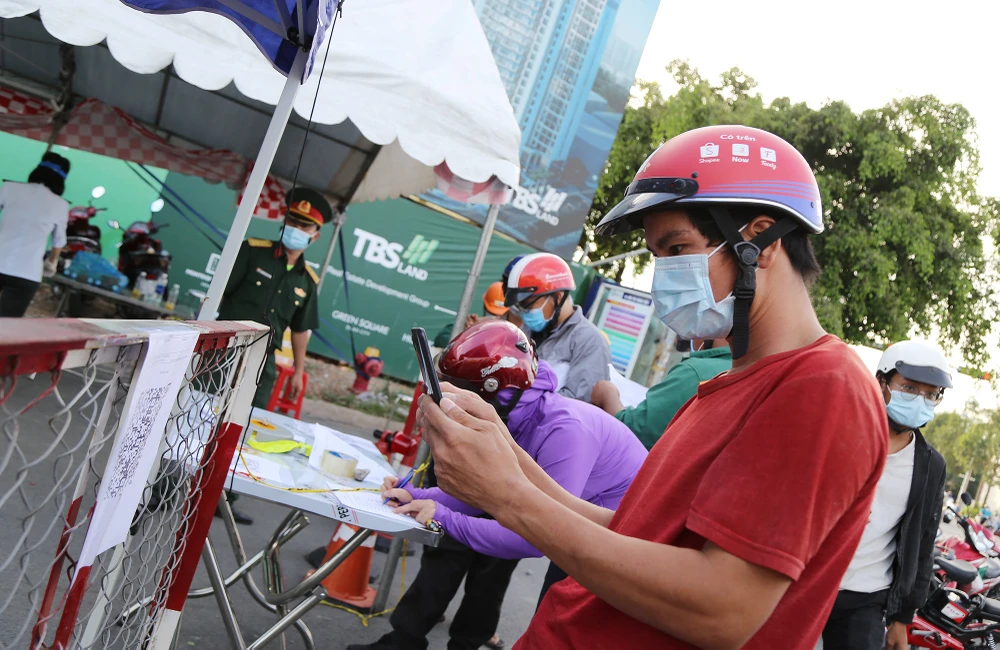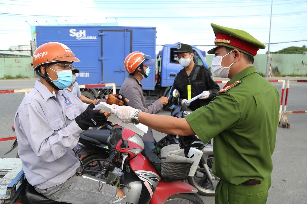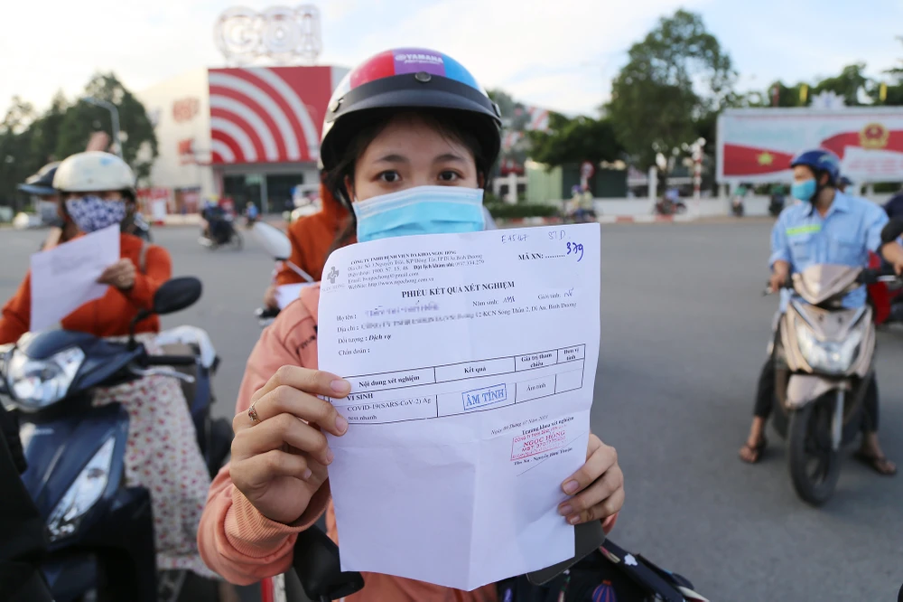 Ở chốt kiểm tra với người từ Bình Dương vào TP.HCM, người dân cũng được yêu cầu xuất trình giấy xét nghiệm âm tính và khai báo y tế trước khi qua chốt. Trường hợp không có giấy cũng được lực lượng chức năng yêu cầu quay đầu.