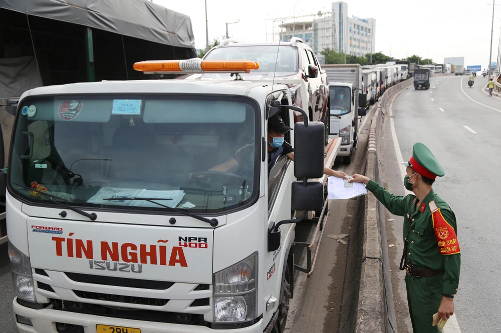 Tại chốt, tất cả người điều khiển phương tiện xe máy, xe ô tô, xe tải đều phải xuất trình được giấy xét nghiệm âm tính với COVID-19 trong vòng 3 ngày trở lại thì mới được phép di chuyển. Với các trường hợp giấy xét nghiệm quá thời hạn 3 ngày hoặc không có giấy xét nghiệm âm tính COVID-19 sẽ được yêu cầu quay trở lại.