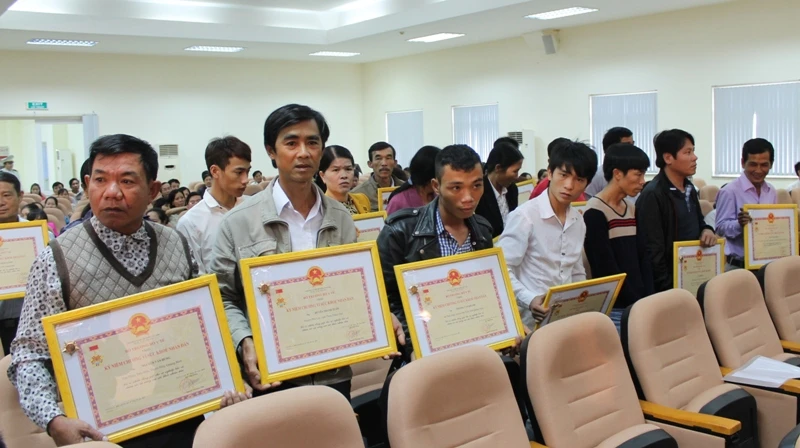 Tại buổi lễ, đại diện Bộ Y tế đã trao tặng kỷ niệm chương và thẻ bảo hiểm cho 200 người đã tình nguyện hiến thận tại Bệnh viện Trung ương Huế.