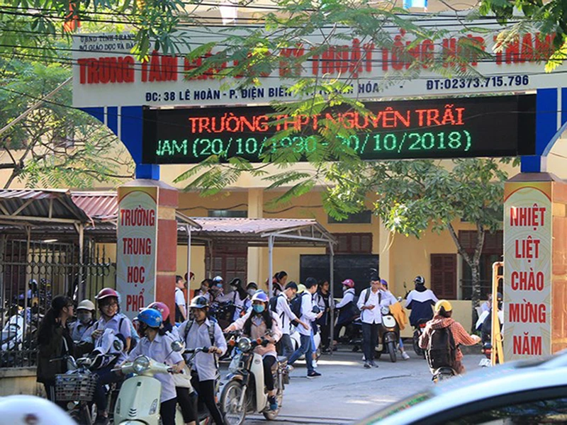 Trường THPT Nguyễn Trãi, Thanh Hóa, nơi xảy ra vụ lùm xùm đuổi bảy học sinh xúc phạm cô giáo. Ảnh: đặng trung