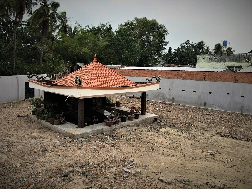 "Trước đây, ngôi mộ cao hơn mảnh đất gần 1m nhưng sau khi bà Phu đổ đất, ngôi một lọt thỏm ở dưới. Mỗi khi mưa, nước tràn vào mộ. Tôi muốn nâng cấp ngôi mộ lên cao nhưng bà Phu không cho xe chở vật liệu xây dựng, thợ hồ vào thi công", ông Bảnh nói.